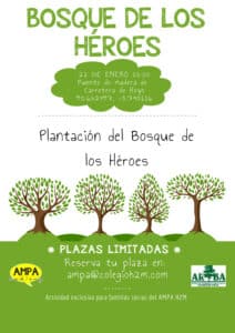 Desde la AMPA queremos colaborar en la formación y educación medioambiental de nuestros hijos, por ello el domingo 22 de enero de 2023 tendrá lugar la plantación
